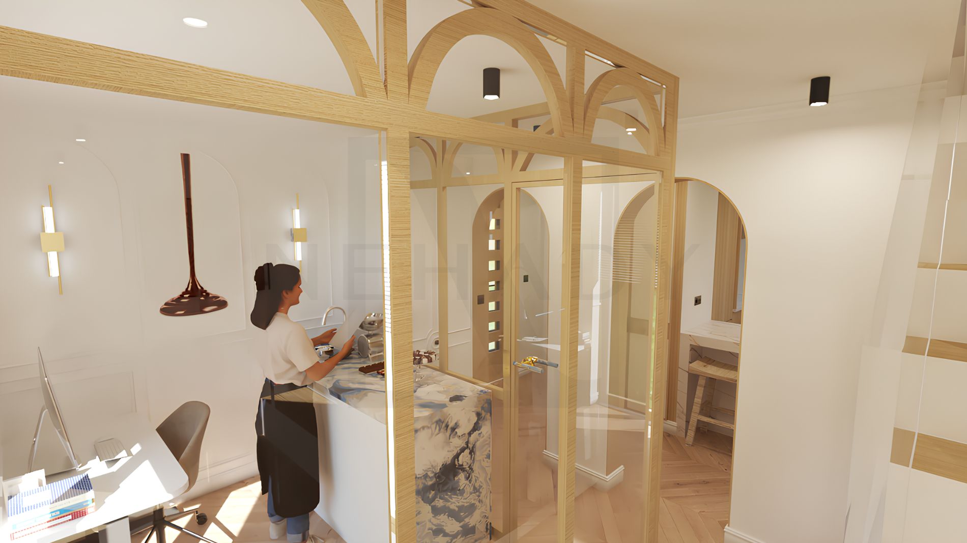 Le tout s’inscrit dans une ambiance haussmannienne modernisée, subtilement teintée d’un esprit bord de mer, pour un espace à la fois inspirant et fonctionnel.