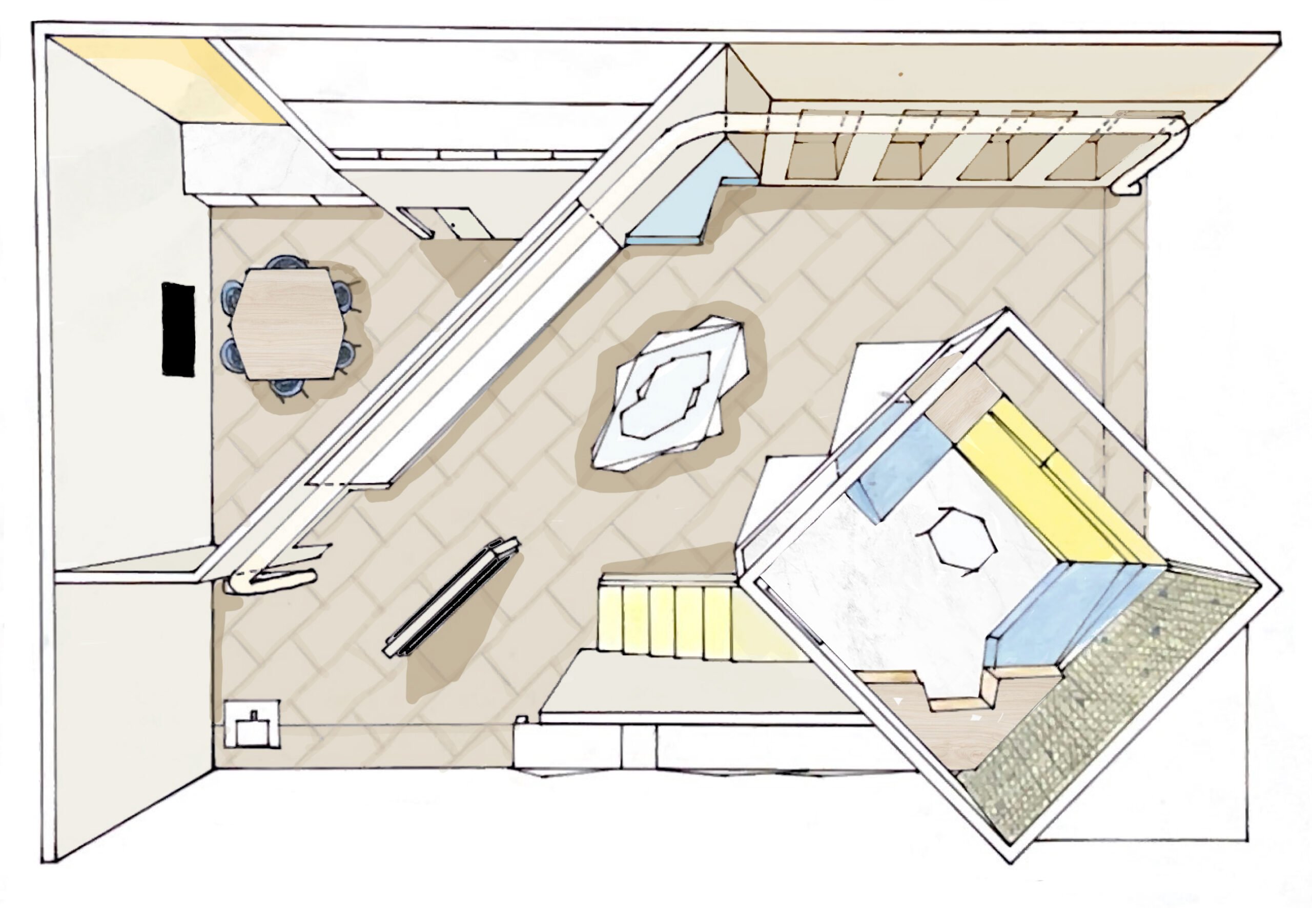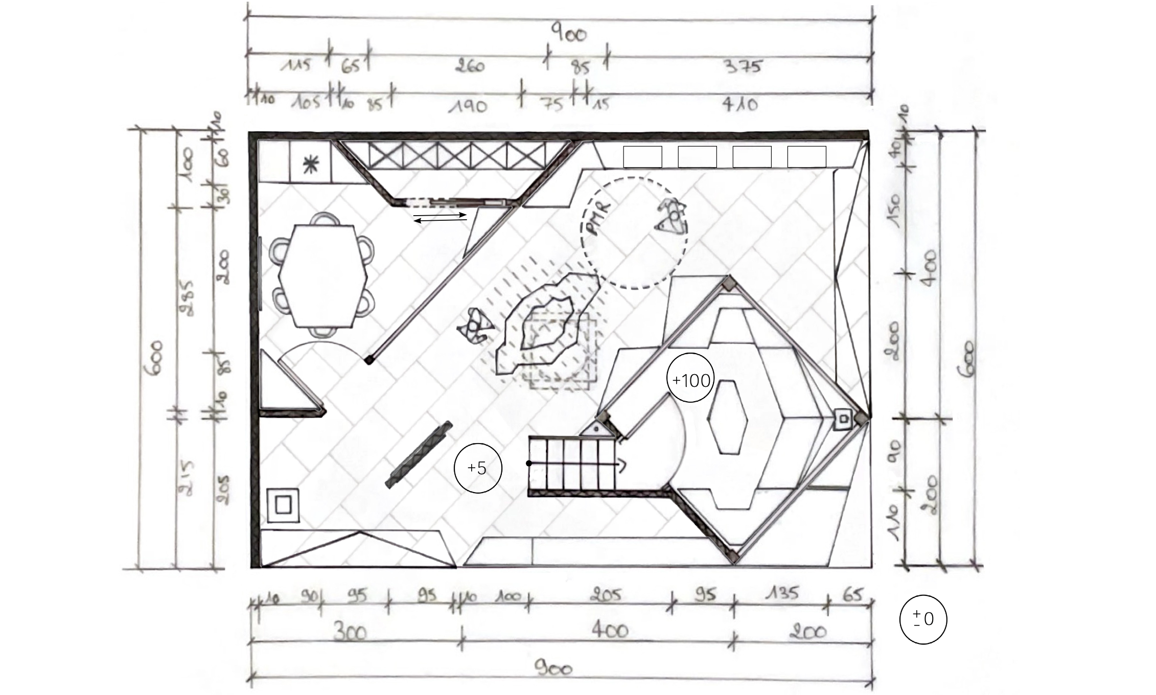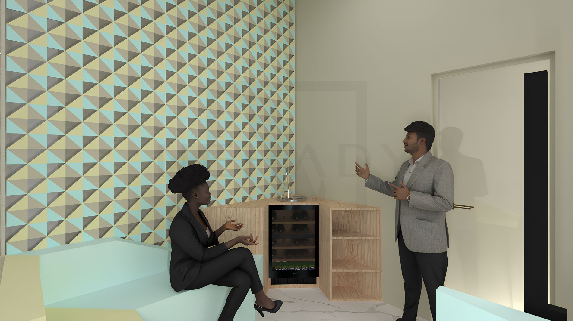 - Un espace VIP surélevé à 1 mètre du sol avec des vitres opacifiantes, accessible depuis un escalier transparent lumineux,